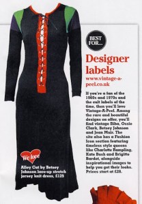 My sincerest thanks to Spirit & Destiny magazine who featured Vintage-a-Peel as their pick for designer labels, within a larger vintage feature, in their March edition. Featuring one of my very favourite frocks as well!
