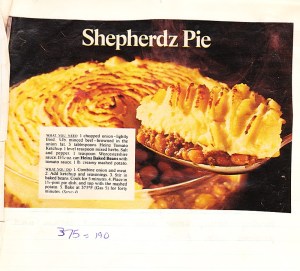 Contrary to what most people seem to [bizarrely] think, I am really quite dorky. The other morning I found myself lovingly preparing Shepherdzzzz Pie from a Seventies recipe my mum has been using since, well, the Seventies. Shepherdzzzz because of the Heinz Baked Beans origins and contents of the recipe. I’m not a natural cook, but it’s one of the things I’m fairly adept at doing.