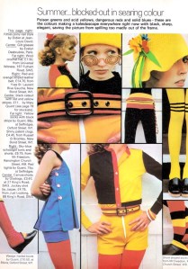 However, i) I like colours, blocked or not and ii) this spread from Vanity Fair (July 1971) shows me how it *should* be done, courtesy of the likes of Foale and Tuffin and Mr Freedom, in true Glam Rock style.
