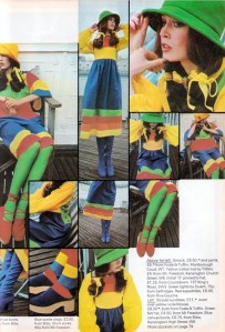 love the Tuffin and Foale ….I had a coat in those colors c. 1970, blue with big rings around the armholes. I bought it in Margate market…think it was a Wallis knockoff (or fell off the back of a lorry) Wish I still had it.ps beret to match with a yellow flower applique
