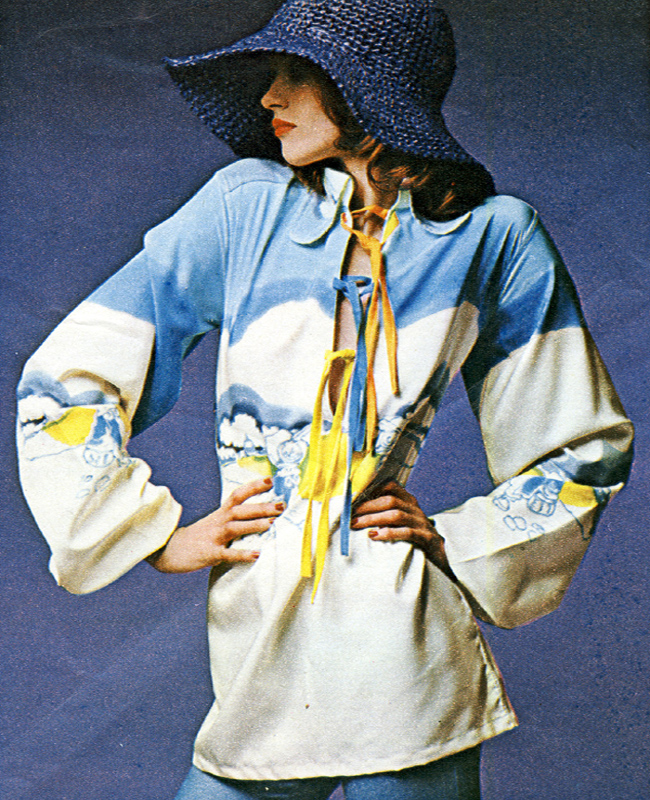 Incredible spread from August 1970, showing the best of the exquisitely hand-painted and printed textiles around at the time. Highly covetable and just about the most perfect styling ever. There’s even a token piece of menswear!