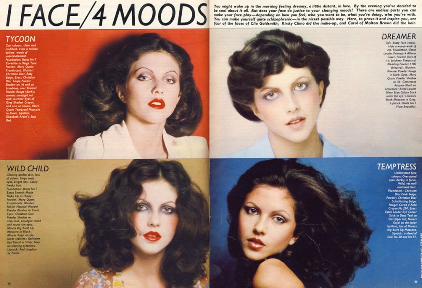 Clio Goldsmith, hair, Honey Magazine, Make-up, seventies fashion