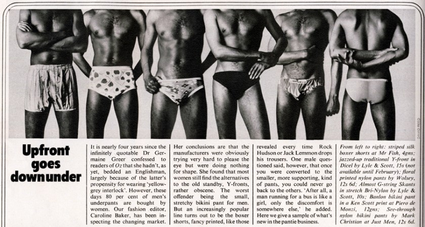 I didn’t know Mr Fish did undercrackers as well! I have to agree with Caroline Baker about the unpleasantness of the bikini pant for a man. My preference (which is all that matters, of course) is for tight boxers. Can’t be dealing with too baggy, or too skimpy!