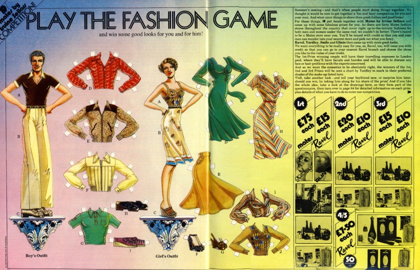 I fear I may be thirty-eight years too late to enter this competition, but I definitely wouldn’t say no to a wardrobe full of Irvine Sellars gear! Let me know if any of you are crazy enough to print this out and make actual paper dolls (and please send photos…).