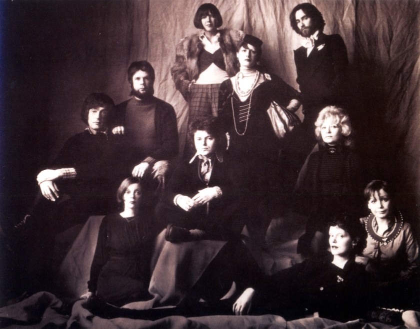 Front row left to right: Jean Muir, Alice Pollock, Thea Porter. Second row: John Bates, Tim Gardner, Gina Fratini. Third row: Bill Gibb, Zandra Rhodes. Top: Mary Quant, Ossie Clark.