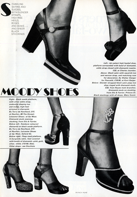 1970s, biba, charles jourdan, Inspirational Images, Patrick Hunt, Rayne, shoes, terry de havilland, Vogue, Walter Steiger
