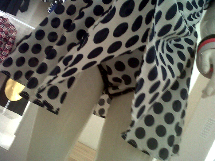 Fulham Road Clothes Shop trousers with Zandra Rhodes lipstick print (please note the perfect pattern placement on the crotch)