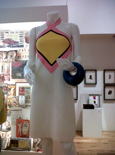 I have finally found a moment to blog about the Pop Art exhibition at The Lightbox in Woking, which is only open for a short while longer. The Lightbox is a tremendous space; airy and light, quiet and tranquil, and it has been transformed (briefly) into a repository of incredible Pop Art paintings, sculptures and….things. The ‘things’ are what I’m most interested in; as the exhibition draws you into the central space in the gallery, you are shown the influence of Pop Art on everything from clothes, to homewares, right down to the groceries you could buy from Sainsbury’s in the Sixties.