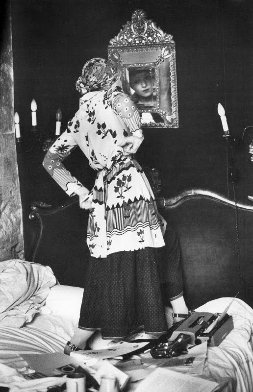 In the late ’60s, the rock hall replaced the discotheque as as the prime area for innovative fashion display. “In fashion terms a Fillmore East opening night deserves as much coverage as the Philharmonic Galanosed Galas,” claimed the Village Voice shortly after the rock auditorium opened in March 1968. “It’s a scene-making pageant whether they’re seeing Lenny at Lincoln Center or Jimi at the Fillmore.” In 1968, Bill Graham…tied together the pageantry in the audience with the fireworks on stage when he organized a mini fashion happening during an interval in the evening’s mixed bill. Unheralded, Barbara Mott, wife of designer Michael Mott, zoomed up the center aisle of the rock palace on an enormous Harley Davidson. Dressed in Mott’s black leather bra top and miniskirt pegged with hobnail studs, she tore up a ramp to the stage and parked her vehicle to the accompaniment of a cannonade of cheers from the Fillmore’s audience.