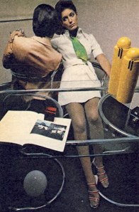 A fascinating little spread here, directed by a 19-year-old Hamish Bowles and featuring pieces by established designers like Sheridan Barnett, Murray Arbeid and the Antony Price I’d give my first born to own… Plus up and coming designers like Stephen Jones and Monty Don (yes, that Monty Don…). Plus the make-up was by iconic Sixties model, Maudie James. I’m not such a huge fan of Harpers and Queen in this period, but this spread is such a perfect combination of what had been and what was to come – which makes it a definite cut above the rest.