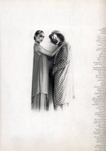 …over here, isn’t it? I haven’t turned to ice, or been out enjoying the snow too much to blog. No, I’m back in the West End, with my latest one-woman show….. ahhh, just joking! I’m back at the ballet, dressing the newest version of The Nutcracker and the schedule is a bit punishing for all involved. So I’m grabbing moments when I can, to post out my wares and try to keep on top of things. But sadly, it means that I’m barely able to keep up with all you lovely bloggers and get half of the things done before Christmas that I needed and wanted to do. Argh! Anyway, to keep you going until I have time/energy to blog again, here is one of my all-time favourite Vogue shoots from December 1975. Beauty and grace personified…