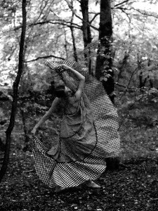 Drifting gypsy dress in early morning sea colours. Scarf, top and trousers, 11gns, at the Fulham Road Clothes Shop. Silver chaining over the head by Carlton Payne, about £10, at Annacat. Silver rings by Corocraft.