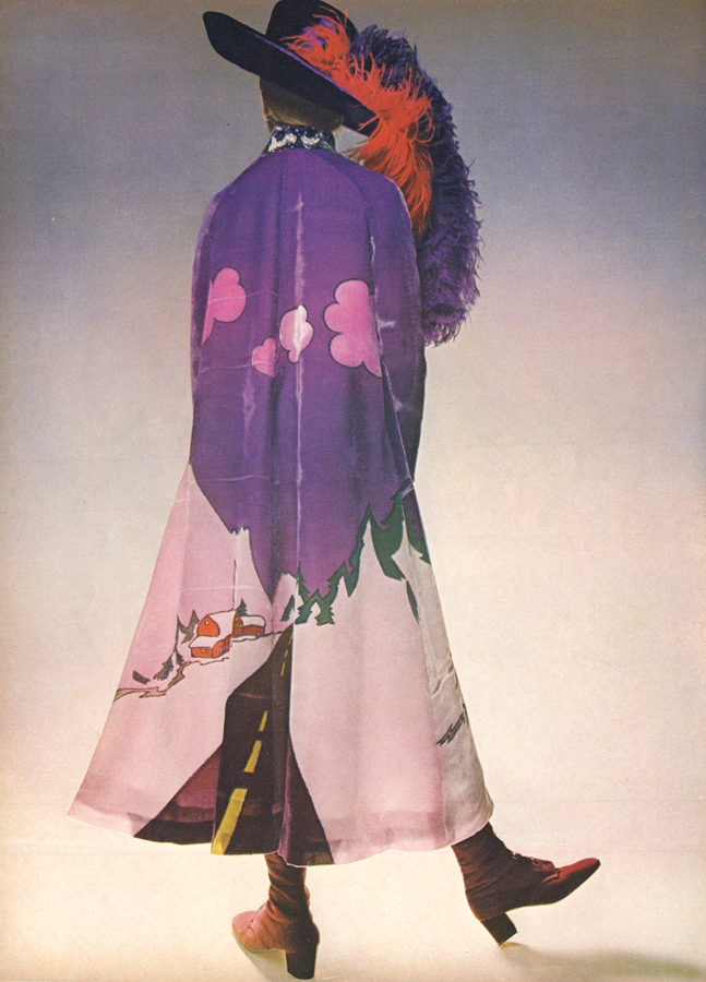 Inspirational Images: Chloe, 1970 1970s, barry lategan, Chloe, Inspirational Images, Vogue Fuchsia clouds, amethyst sky, wild rose snow scene hand-painted across a pure panne velvet coat, raglan sleeves and single breasted. By Chloe, £200 to order. Photographed by Barry Lategan. Scanned by Miss Peelpants from Vogue, November 1970 Share and share alike: Click to share on X (Opens in new window) X Click to share on Facebook (Opens in new window) Facebook Click to email a link to a friend (Opens in new window) Email Click to share on LinkedIn (Opens in new window) LinkedIn Click to share on Tumblr (Opens in new window) Tumblr Click to share on Pinterest (Opens in new window) Pinterest Click to share on Reddit (Opens in new window) Reddit Like Loading...