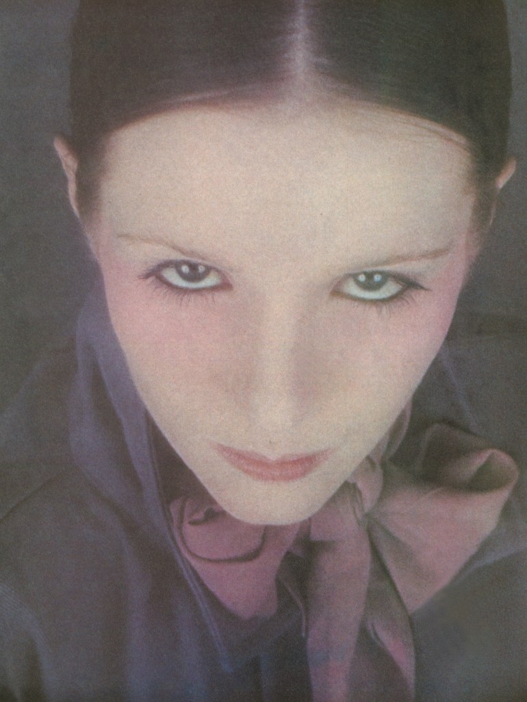 The bodice sleeve in chiffon, clouds of mauve blowing across. The top crossed low over the bosom and simply gathered at wrists. slight gathers in the skirt catchir the air. By Nettie Vogues, at Harrods: Hilda Hanson. Nottingham. Velvet choker. The Purple Shop at Antiquarius. Amethyst and diamond rings. Blooms; emerald and diamond ring. David Morris. Make-up by Orlane, with Jean d’Albret Casaque scent.
