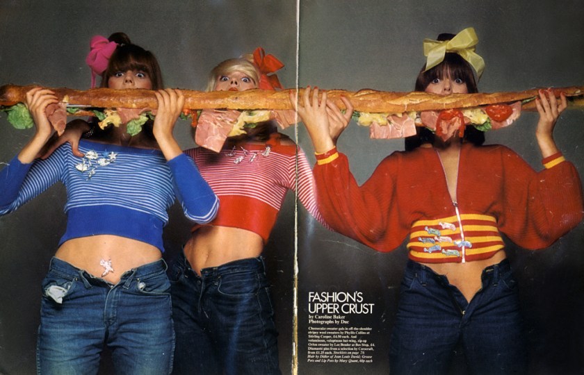 Cheesecake sweaters by Phyllis Collins at Stirling Cooper. Voluminous batwing sweater by Lee Bender at Bus Stop. Jewellery by Corocraft.
