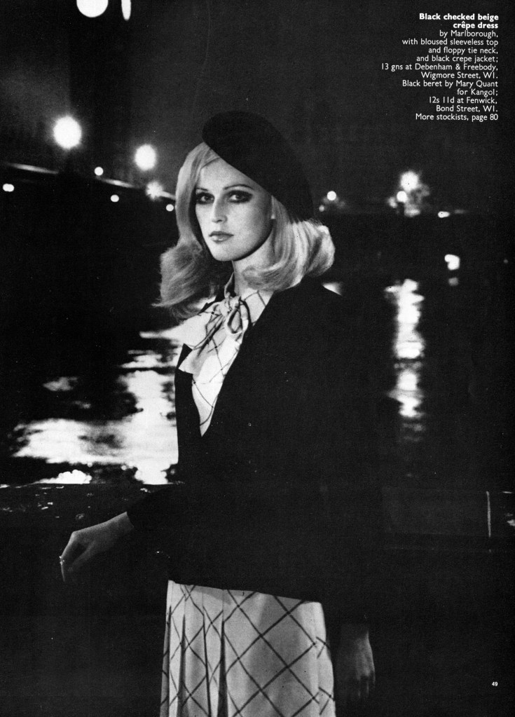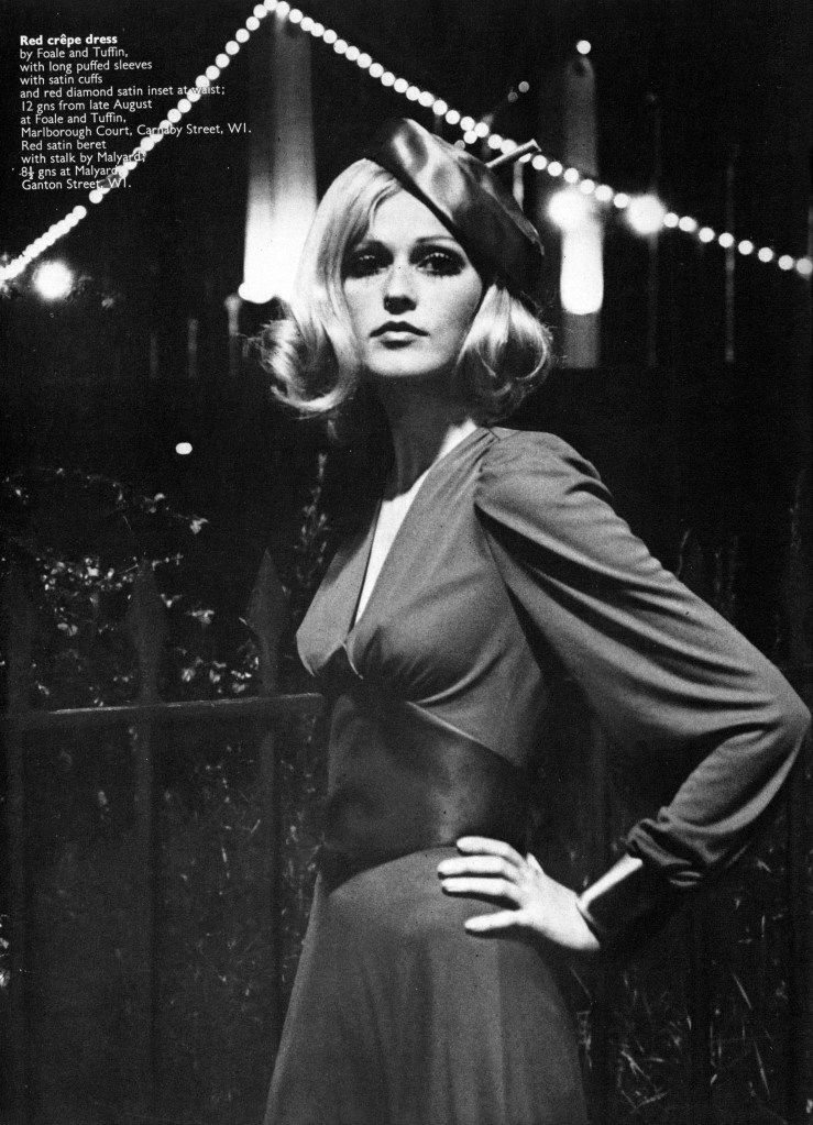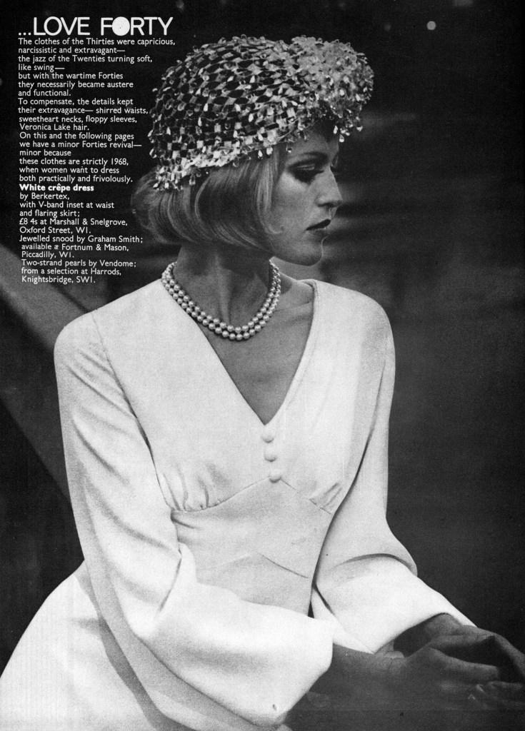 On this and the following pages we have a minor Forties revival – minor because these clothes are strictly 1968, when women want to dress both practically and frivolously.