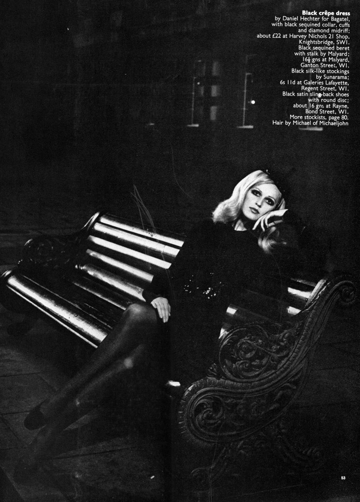One of the finest editorials of all time, from the dream team of Caroline Baker and Harri Peccinotti at Nova. You can’t help thinking about the clear influence of the Impressionists, such as Renoir, on the aesthetic, but also about how this shoot must itself have been influencing other people for years afterwards. For example, Picnic at Hanging Rock was released a mere three years later and the petticoats, parasols and lace-up boots can’t help but remind you of that.