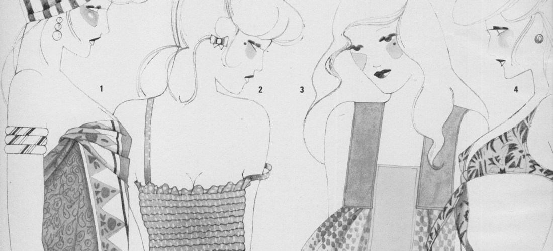 A holiday necessity—to entice your gigolo, or simply preserve decency on the terrace for lunchtime drinks — is a cover-up. We’ve looked around, found the nicest ones in town and had them sketched here by Caroline Smith. Some you tie Polynesian style (remember Blue Lagoon?) round you; others you lie on, or in; others are like the simplest dress slipped over your head to demurely cover you up (don’t shock the curé) for church-seeing.