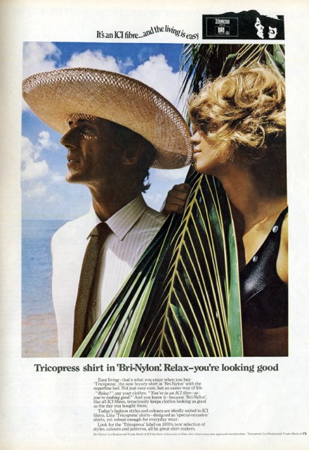 And, finally, he’s really not the most swinging of dudes, but I have to admire a man who wears a bri-nylon shirt and tie on a tropical island…