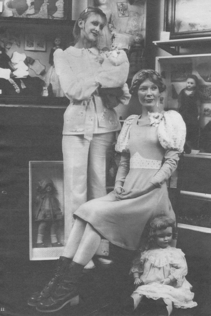 Cream is in favour with Marianne (left) looking great in culottes and baggy blouse. Right: Louise wears a cream skirt and blouson jacket. Seems to impress Queen roadies John and Paul, too.