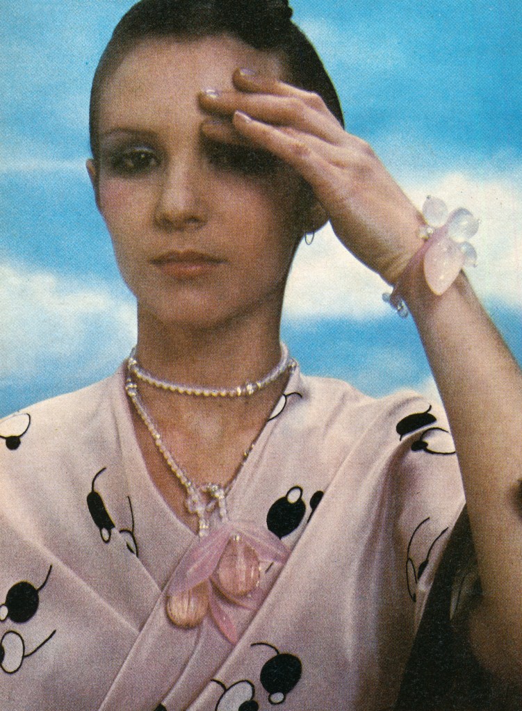 Make-up was applied by visagiste Jean Duval of Revlon, Paris.