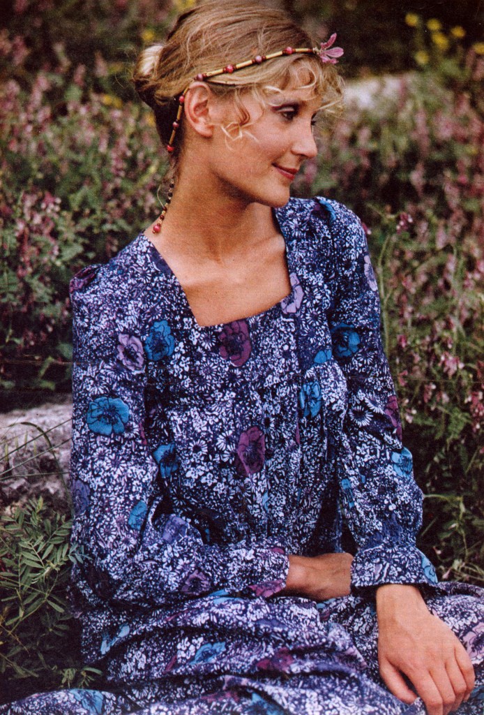 Then a less identifiable dress of a similar ‘peasant’ style but rather less traditionally English in the use of pattern and colour (possibly by Mexicana, Georgia Charuhas or a similar brand):