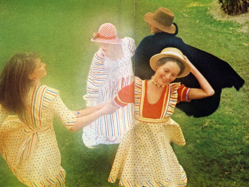 Not really Valentine themed (unless you’re planning to spend your day at the circus, which would actually be a pretty good way to spend it…) but scanned from teeny girl magazine Valentine which is largely filled with comic strip stories aimed at hormonal young ladies. I bought it mainly because I recognised the garment on the front cover as a Miss Mouse/Rae Spencer Cullen with distinctive bow print. I’m also a sucker for the circus theme, which seems to be a recurring favourite for late Sixties/early Seventies fashion stylists…