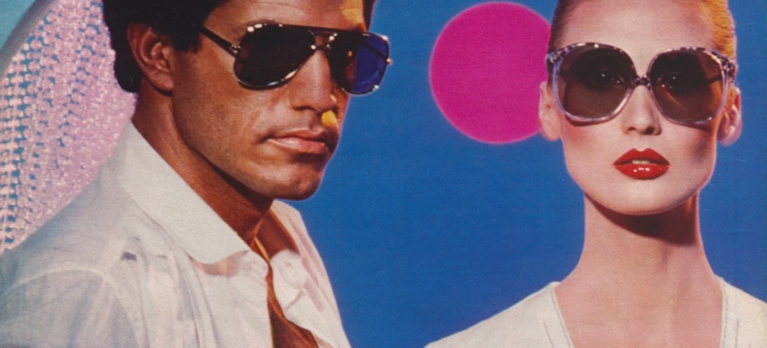 Left: Pink, short-sleeved shirt, £8.95. Lilac trousers, £17. Mauve, three-piece suit (trousers not shown), £62. All from Johnson & Johnson. Trilby from Moss Bros., £10.50. Striped tie from Johnson & Johnson, £1.50. Right: Black glazed cotton shirt by Strawberry Studio, £14.99. Yellow trousers from Johnson & Johnson, £15.50. Black dinner jacket from Retro, f15. Trilby by Charles Batten £6.50. Sunglasses by Polaroid, from £5. Yellow and black tiger-print tie from The Body Shop, fl. Gold hankie from Moss Bros., £1.50. Black, mock-croc belt from Woolworth £1.50.