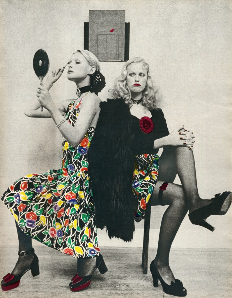Anyone who knows me at all will know that *I* cannot resist crêpe, never mind what a fella thinks. This is a stunning editorial, with a model I’m not sure I recognise from anywhere else – so do comment if you can identify her. Featuring two covetable dresses by Ossie Clark but also featuring two by the mysterious ‘Boobs’ boutique label (by designer Linda Warren). I have found mention of a ‘Boobs’ boutique in Edinburgh, but I think it might just be coincidence. Again, holler if you know anything!