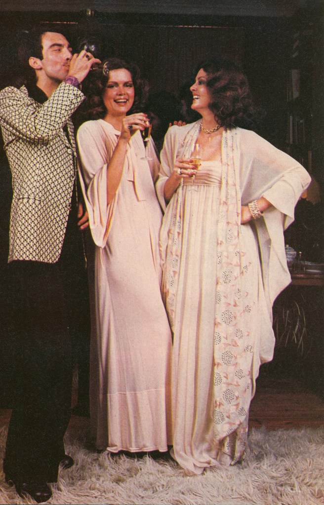 Parties are part and parcel of the festive season and once the harrowing run-up to the 25th is over, you just have to throw caution to the winds and enjoy yourself ! Make Christmas a really special event this year and buy yourself a present—a dress that will make a room go quiet; a dress that will make heads turn . . . in other words, a real showstopper. And, because it’s anything but inexpensive, a showstopper that’s not just tied to this winter, but will go on and on in its dateless line. Party dresses are designed to make an impact—so be the centre of attraction, and while you’re enjoying yourself, don’t forget to propose a toast to Christmas.
