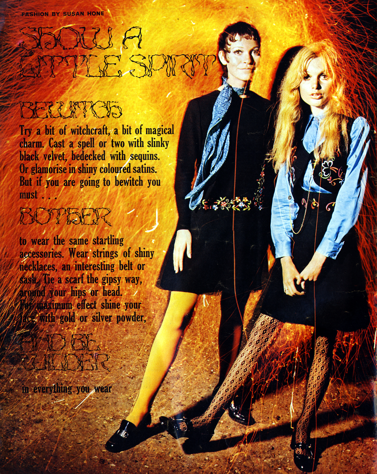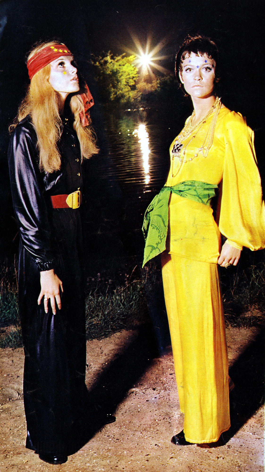 Fashion by Sue Hone. Modelled by Madeline Smith and unknown model.