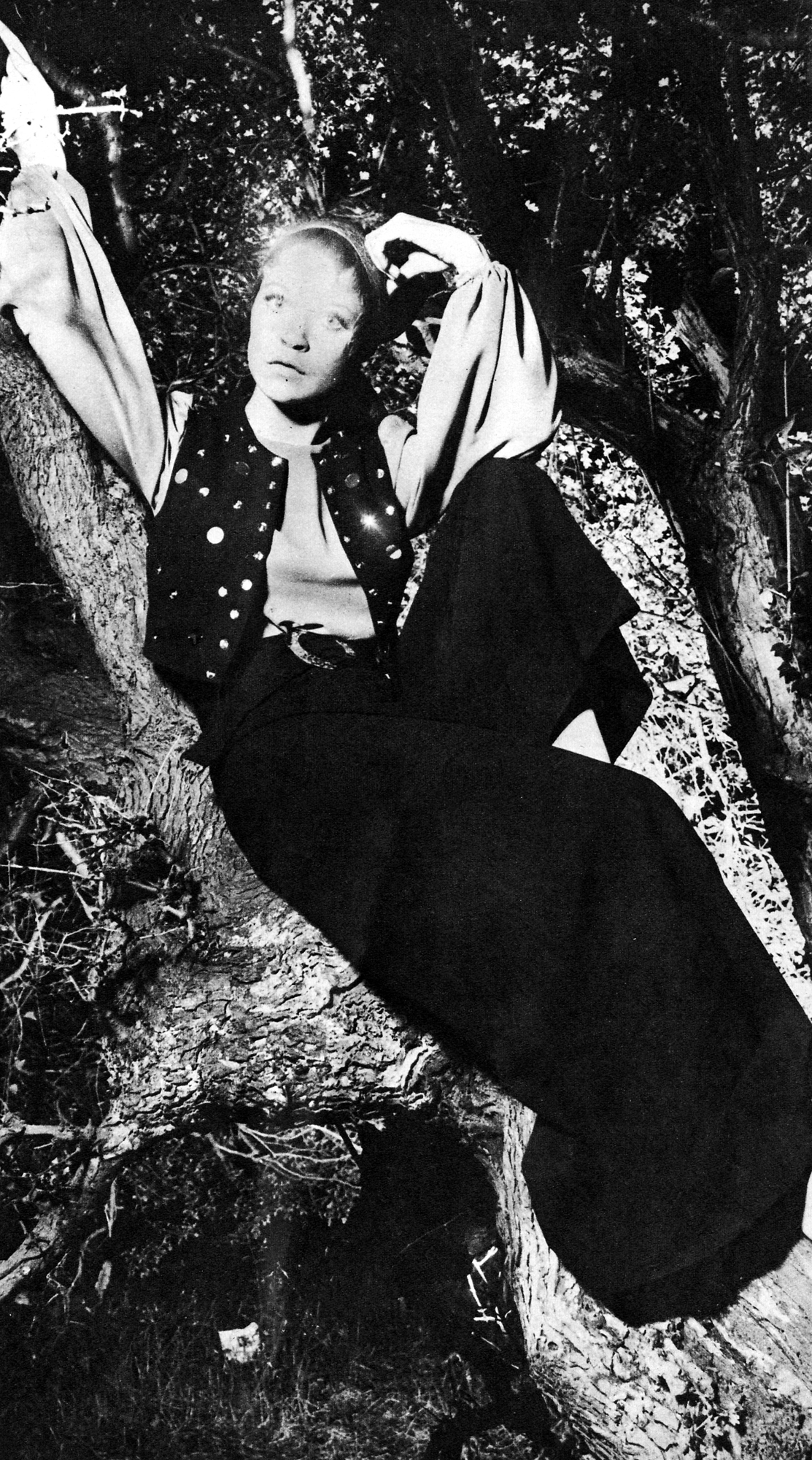 Shirt by Aristos. Trousers by Gordon King. Skirt by Alan Rodin. Boots by Sacha. Hat by Herbert Johnson.