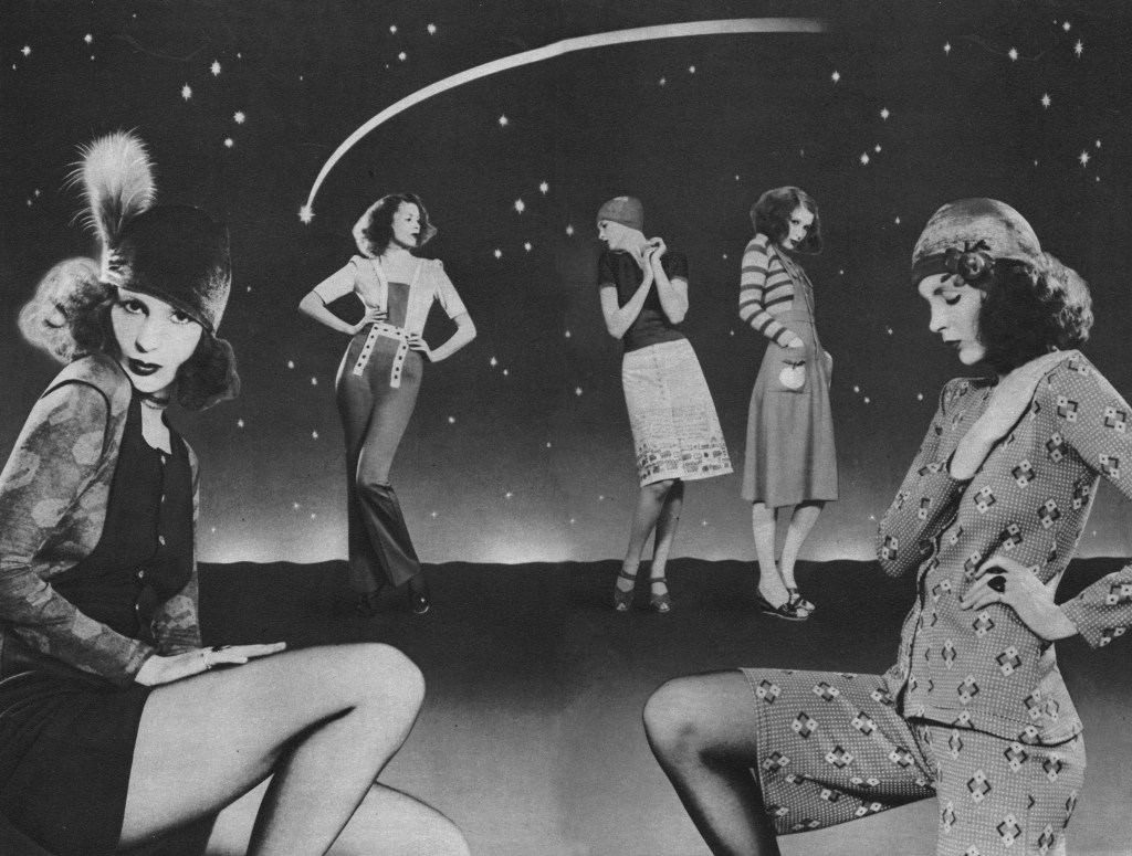 Run barefoot through the grass or dance under the stars. Shades of Isadora Duncan* and free, flowing movement. Long, lithe limbs leaping through loose chiffon. Wild intensity in dramatic falls of fabric. The romance of long dresses, of floating frills in transparent fabrics is yours for the asking. Come, do a moonlight flit with us…. *Isadora Duncan. who moved in high society, and whose dancing shook Edwardian England, initiated free dance movement clad in clothes which emphasised her point. We can still thank her for the romantic-looking, drifting dresses inspired by the film revival of her life story — on release in the Autumn, starring Vanessa Redgrave.