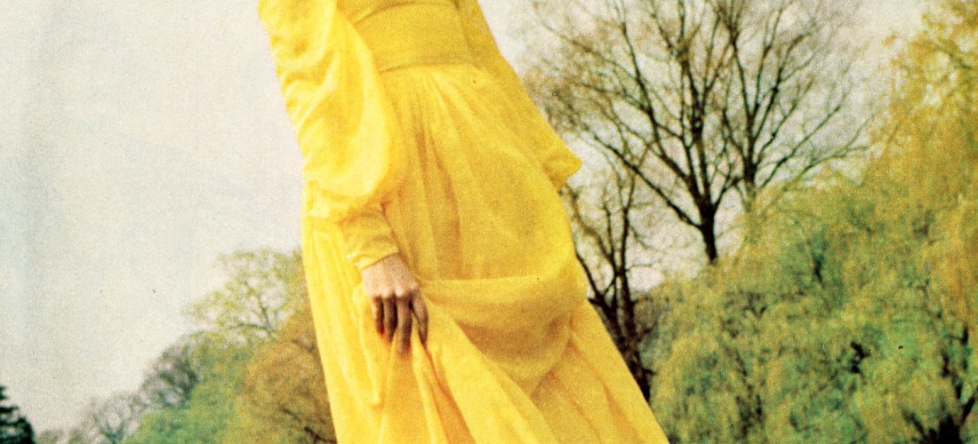 Run barefoot through the grass or dance under the stars. Shades of Isadora Duncan* and free, flowing movement. Long, lithe limbs leaping through loose chiffon. Wild intensity in dramatic falls of fabric. The romance of long dresses, of floating frills in transparent fabrics is yours for the asking. Come, do a moonlight flit with us…. *Isadora Duncan. who moved in high society, and whose dancing shook Edwardian England, initiated free dance movement clad in clothes which emphasised her point. We can still thank her for the romantic-looking, drifting dresses inspired by the film revival of her life story — on release in the Autumn, starring Vanessa Redgrave.