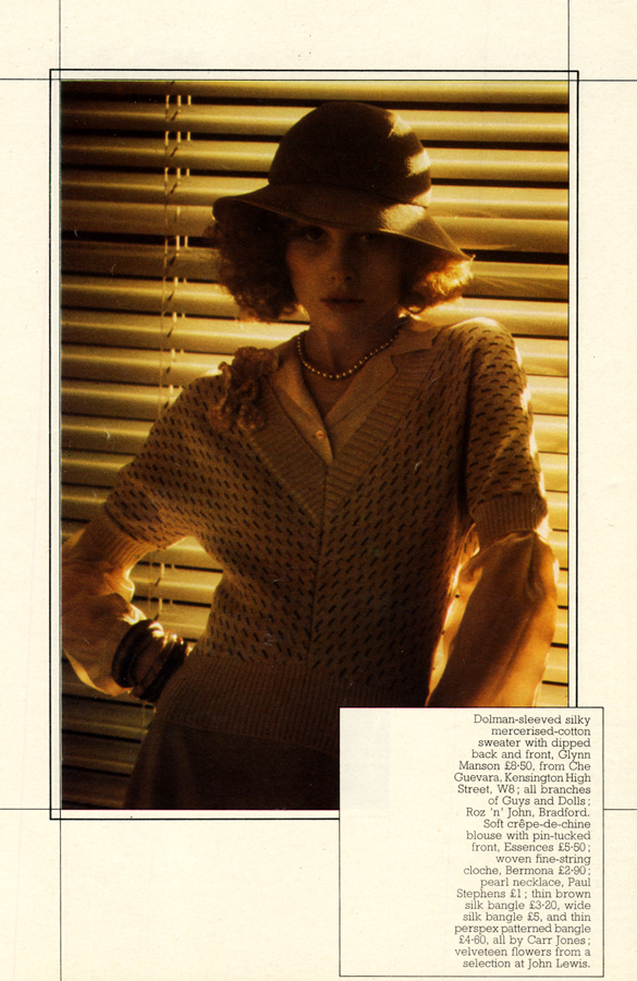 Sweater by Glynn Manson. Blouse from Essences. Cloche by Bermona.