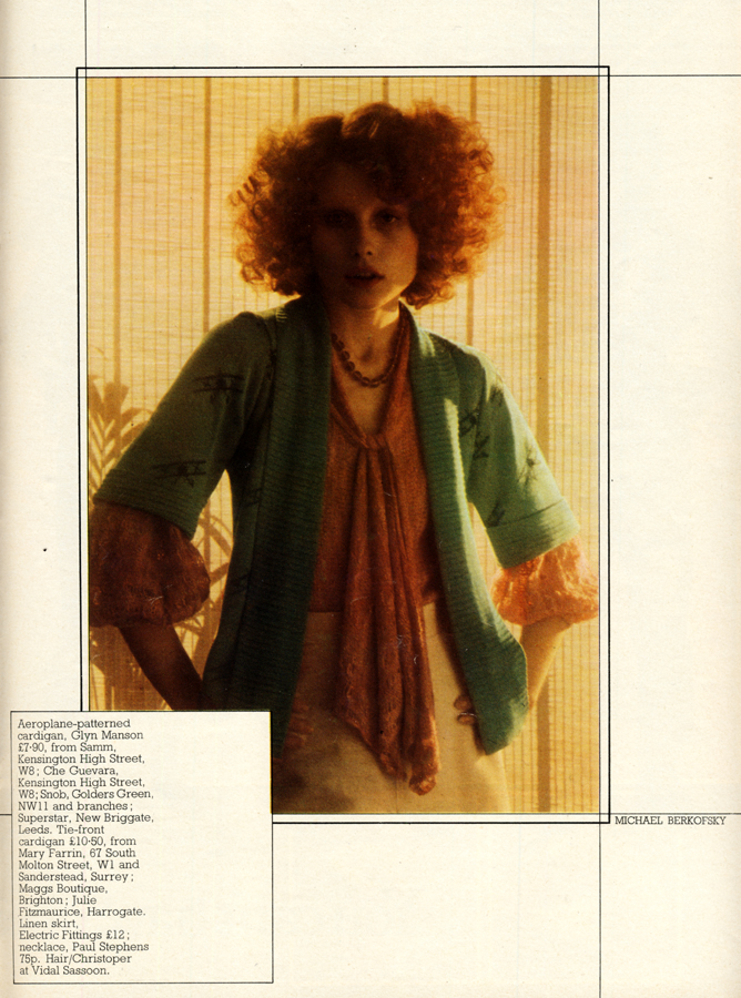The boy’s stripey sweater and white Oxford bags are from Tramps. Price is £7.50 from Gary Elliott; Edwardia of Manchester; Paul Smith, Nottingham. the sweater cost £4 and also comes from Paul Smith, as well as the George Best shops, and Quincy of the Kings Road. The girl’s outfit is from a selection by Miss Mouse at Peter Robinson.