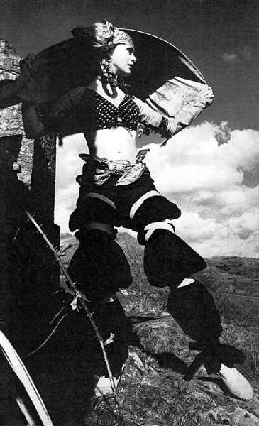 Waterproof pigskin culottes by Cordoba Suedewear. Silk shirt by Annacat. Snakeskin waistcoat by Quorum.