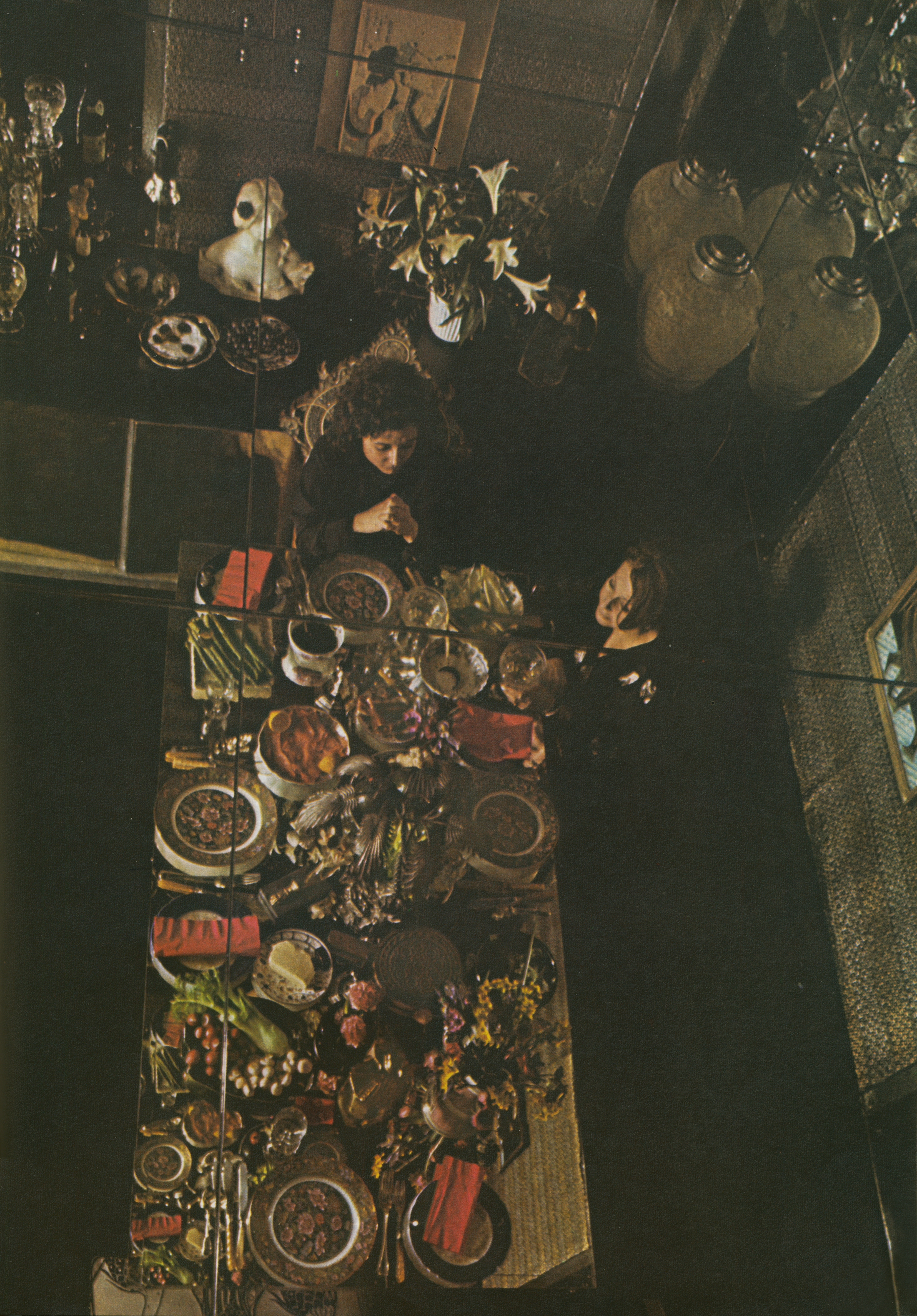 Thea Porter (right) and her daughter Venetia. On the richly decorated table are some of Mrs Porter’s favourite Lebanese dishes.
