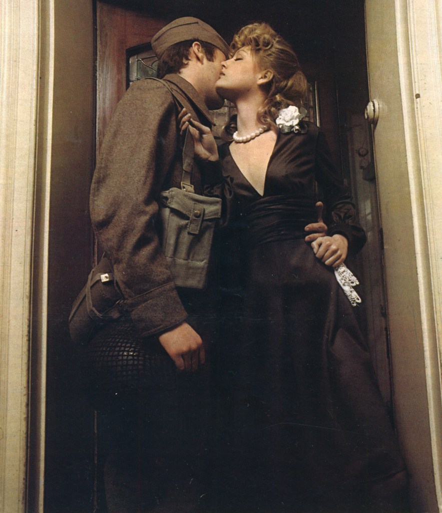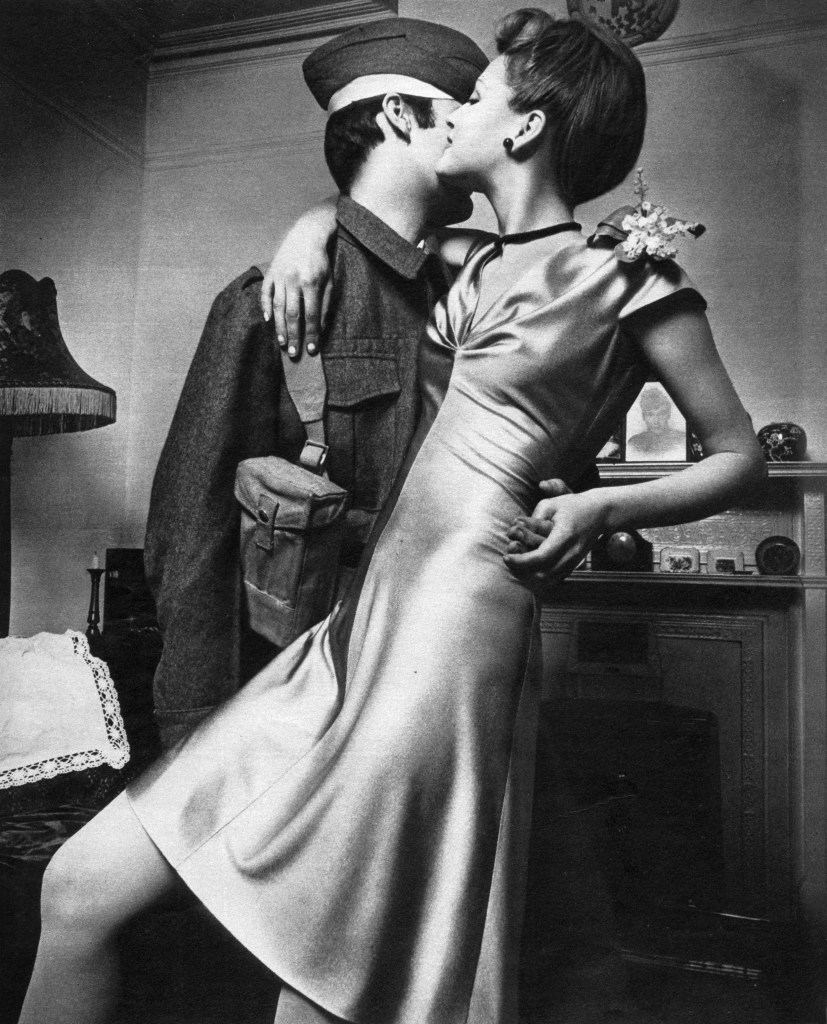Remember those Joan Crawford, Bette Davis, Hollywood weepies where men were heroes and women were fluttery, feminine creatures who stayed at home, controlling the tremble in their lower lips when the boys went off to war? Well, the best of the Joan Crawford era has finally hit town, and few designers have caught on to the ‘Forties look as successfully as Sheridan Barnett of Tony Berkeley. A talented twenty-three-year-old, he is one of the newest designers to emerge in London. He obviously likes women to be women as his clothes are beautifully cut and styled and are entirely feminine. He has a keen eye for line and simple detail which he carries through in his choice of fabric. All the dresses photographed (available from the Way In at Harrods) are in Tricel and show how important shape has become again. The clothes are seductive with the emphasis on simplicity and style …