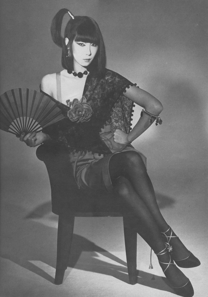 The look is tarty—and where better to go for background atmosphere than Hong Kong, sinful city of the Orient, perfect setting for saucy ladies of ill-repute. In this rich, bustling East/West meeting point, with its maze of colourful streets and endless shops bursting with tax-free jade, pearls and cameras. one gets the feeling that beyond these elegant facades are hidden opium dens, James Bond intrigues, and seamy Suzie Wong bars. We took the ferry across from Kowloon to Hong Kong and travelled to Aberdeen—a small, picturesque harbour inlet filled with over eight thousand junks and sampans, ornate floating restaurants selling delicious, fresh seafood, and crowded local markets.