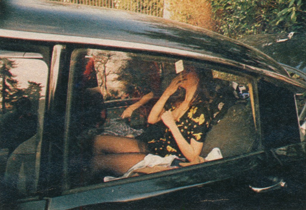 Neatly fandangoing into the spotlight – Katherine and Margaret. Katherine’s favourite designer is Karl Lagerfeld at Chloe. How right then for her to be attired in printed bra top and skirt. But paradox, paradox. She also fell in love with the stripey pixie hat seen at Dorothee Bis. Happily, she’s thrown caution to the wind and wears them together.