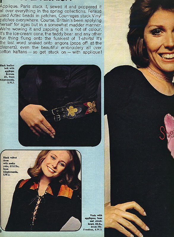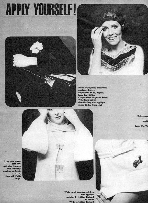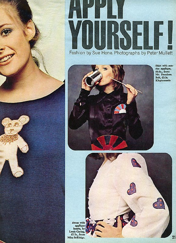 One of the best things about my being geeky enough to buy a lot of these magazines is that sometimes, just sometimes, I can actually offer the item for sale. How lovely is that? From this delightful 4th April 1970 issue of Petticoat, we have a feature on appliques in all forms.