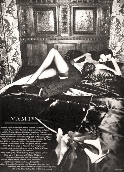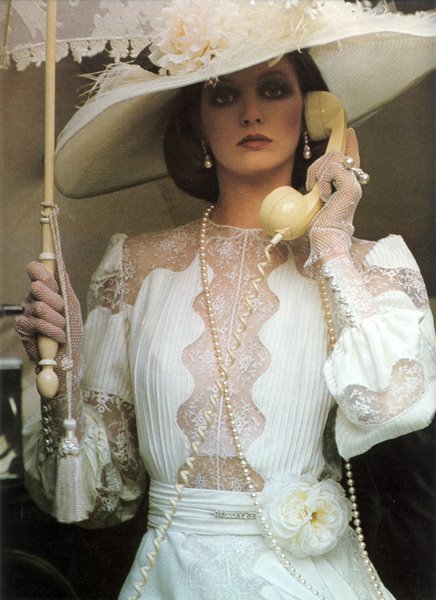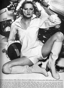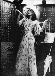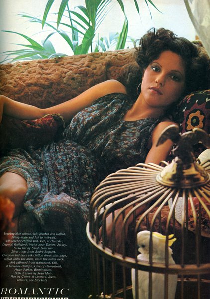 No, it’s not a new Spice Girls line-up. David Bailey and Vogue posed this quartet of female styles back in 1974 and I think it’s a wonderful photoshoot, if a little bit silly in premise terms. Bailey can be a very hit-and-miss photographer, for me at any rate, so I thought it would be nice to show you one of the better shoots I’ve found in my stash of magazines! And while it’s certainly all a bit of silly fluffy nonsense, we all need a bit of silly fluffy fantasy when the weather is a bit grim and the world is all stressing about money….