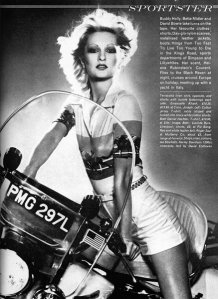 Personally, I’m a romantic. I like the idea of being the vamp but it’s too much hard work. Showgirl requires money I simply cannot imagine ever having, and even if I did have it….aside from a Duran on one arm and a wardrobe full of Ossies and Vivienne Westwood frocks….I am not sure I wouldn’t feel awfully guilty every day for being such a glutton. Sportster? Couldn’t be further away from my personality, aside from the Bowie thing of course. Although I do like sports cars, I just can’t drive them!