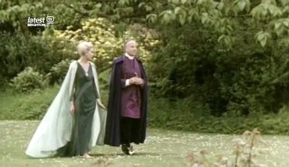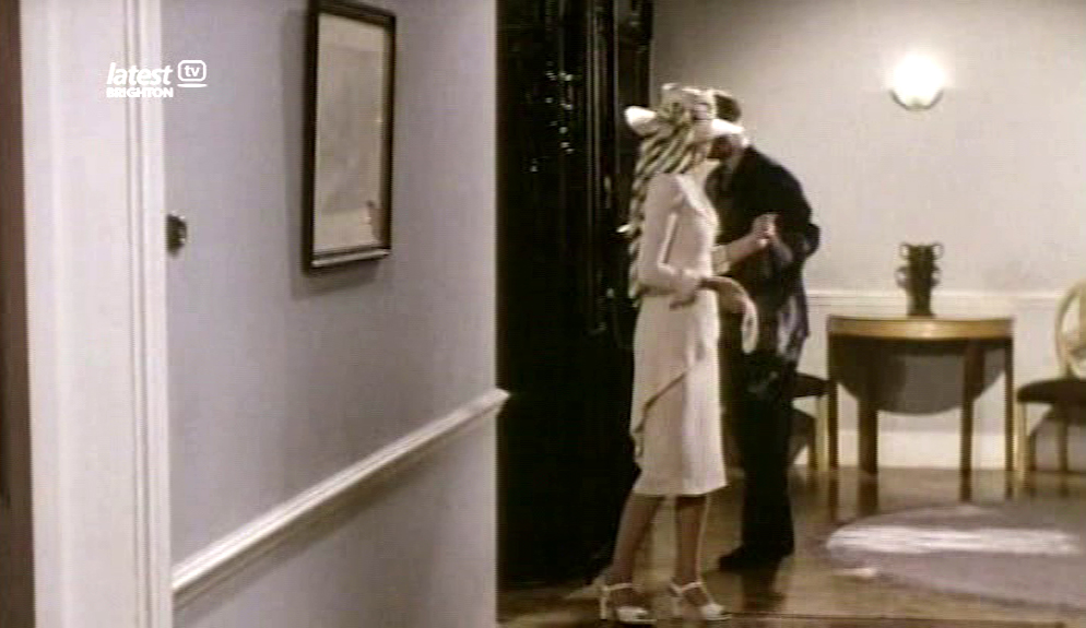 Then, as if by magic, she then appears in the most spectacular Zandra Rhodes gown. A gown which will, I’m afraid to say, eventually end up soaked through with sea water and very likely ruined.