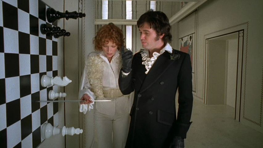 The Final Programme (1973) is a film I must admit I have been desperate to see for many years. Ever since I read that Ossie Clark and John Bates designed clothes for the leading man and lady respectively, but also because of the connection to The Avengers – courtesy of writer, designer and director, Robert Fuest. I am less familiar with the work of Michael Moorcock, so I hope that his fervent fans will forgive me for any ignorance and allow me to mainly rave about the aesthetics of the film.