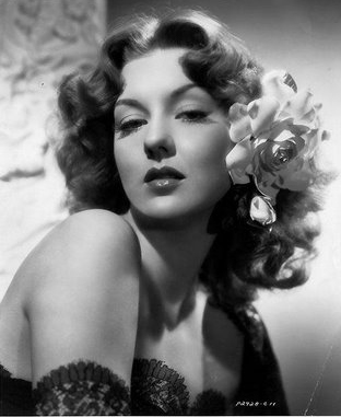 Not victory rolls. She has simply pinned loose curls on the top of her head. The effect is pretty, soft, natural and unforced. Woman’s Illustrated, August 1946.