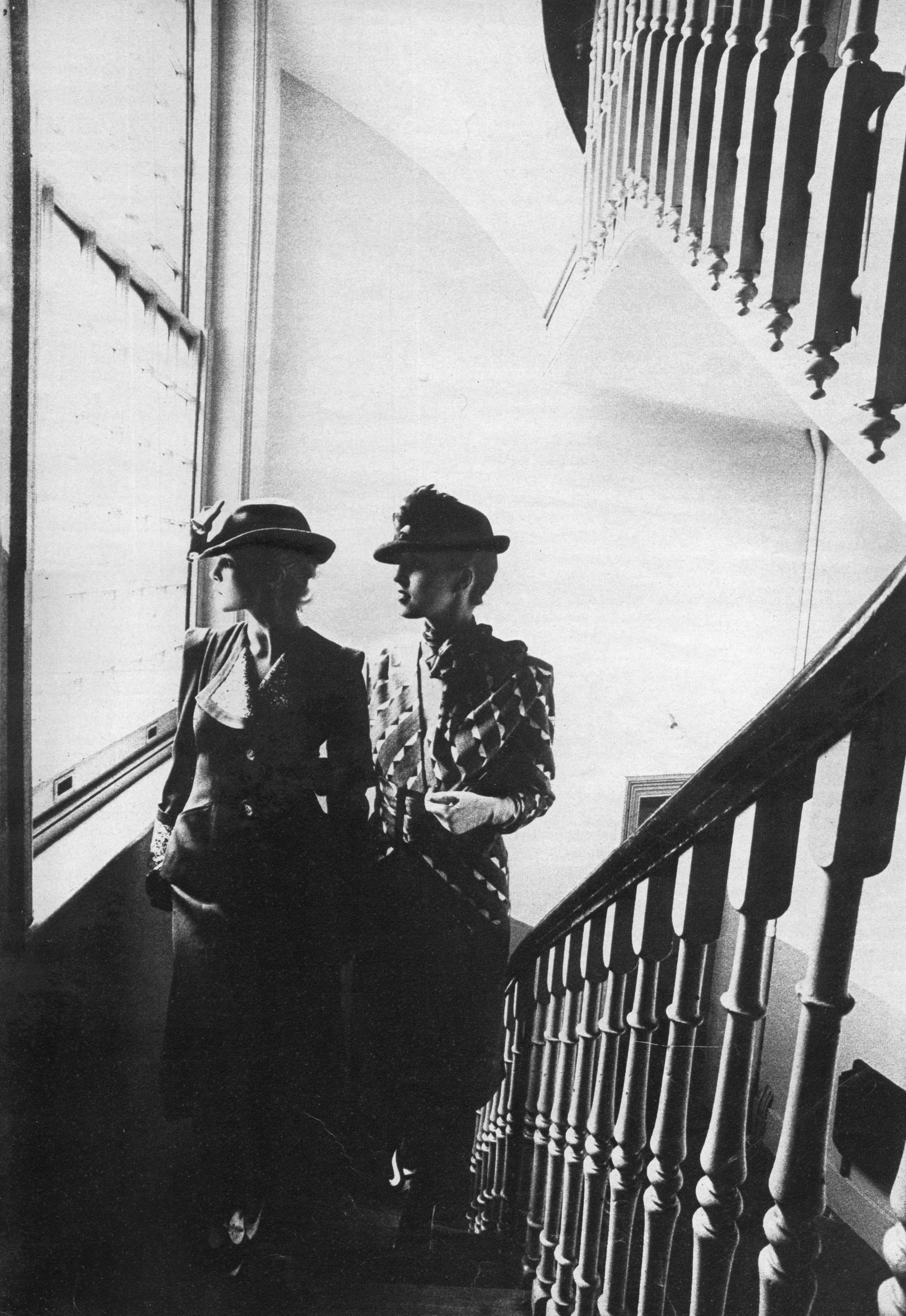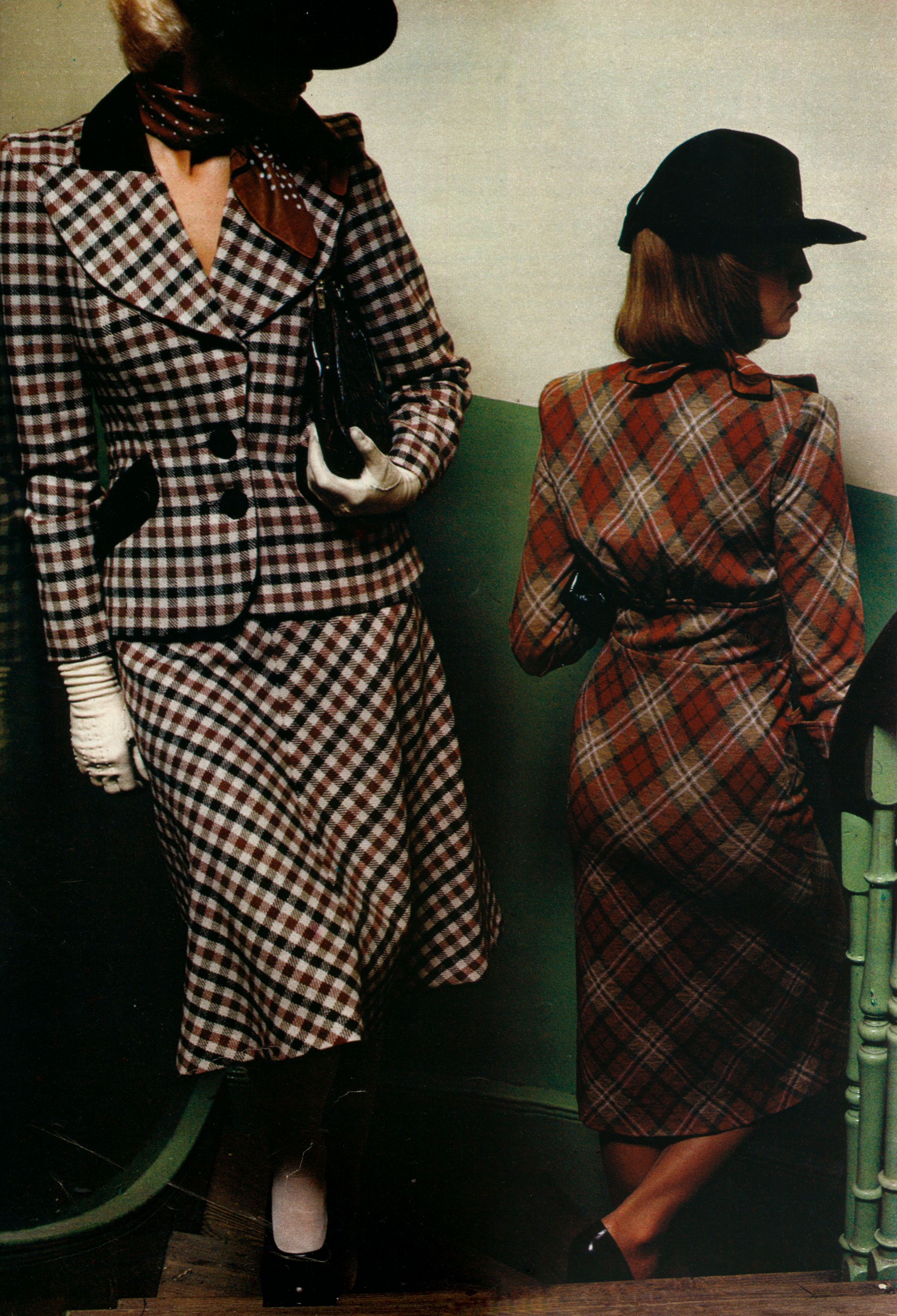 Swagger around this autumn in one of the most dramatic coats ever. Gone are skimpy shapes, instead there’s a swirling full-cut look, strongly reminiscent of the ‘Fifties. Back comes the walking-out coat and the ‘jigger jacket’. Big checks —the bigger the better—are hot news. Striped ankle socks and tarty high heels complete this new look.