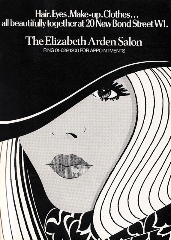 Hair by Jean Louis David. Make-up by Jacques Clement for Elizabeth Arden.
