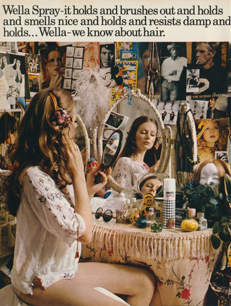 Wella Spray – it holds and brushes out and holds and smells nice and holds and resists damp and holds… Wella – we know about hair.